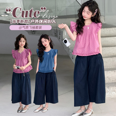 1*4下载“2618款圆点小飞袖牛仔裙裤套装”图片包